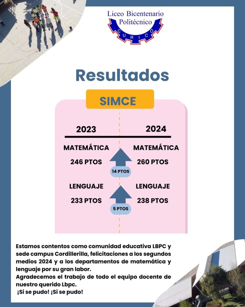 Estamos contentos como comunidad educativa LBPC y sede campus Cordillerilla, felicitaciones a los segundos medios 2024 y a los departamentos de matemática y lenguaje por su gran labor. Agradecemos el trabajo de todo el equipo docente de nuestro querido Lbpc. ¡Si se pudo! ¡Si se pudo!